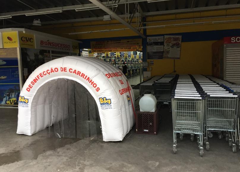 A Big Format tem uma solução inovadora! Uma das maiores preocupações de quem vai ao supermercado é ter que manusear o carrinho de compras sem saber se quem manuseou antes, teve o cuidado de desinfetar as mãos. Por isso, a Big Format lançou um túnel de desinfecção para carrinhos de mercado.