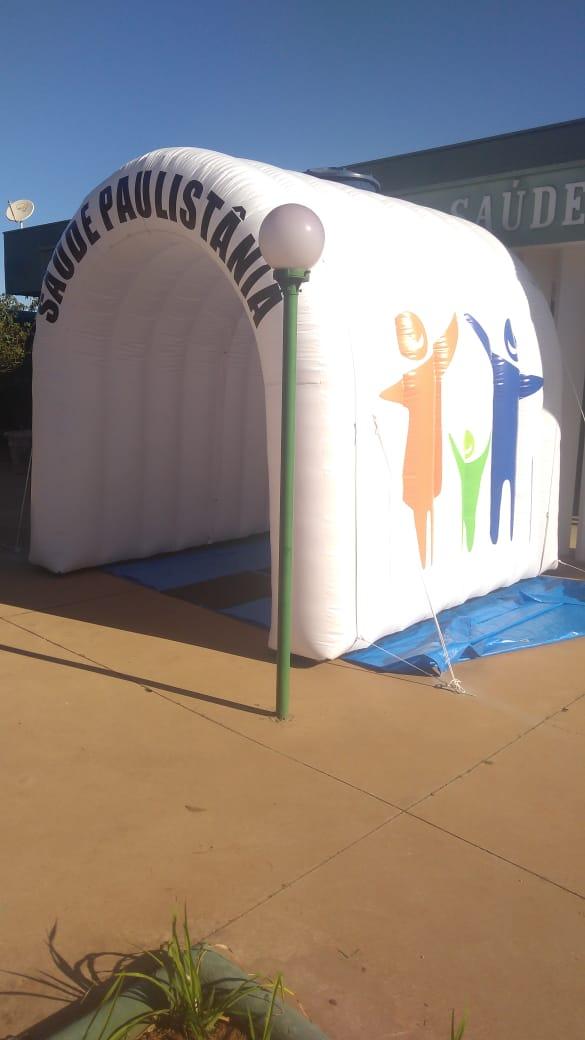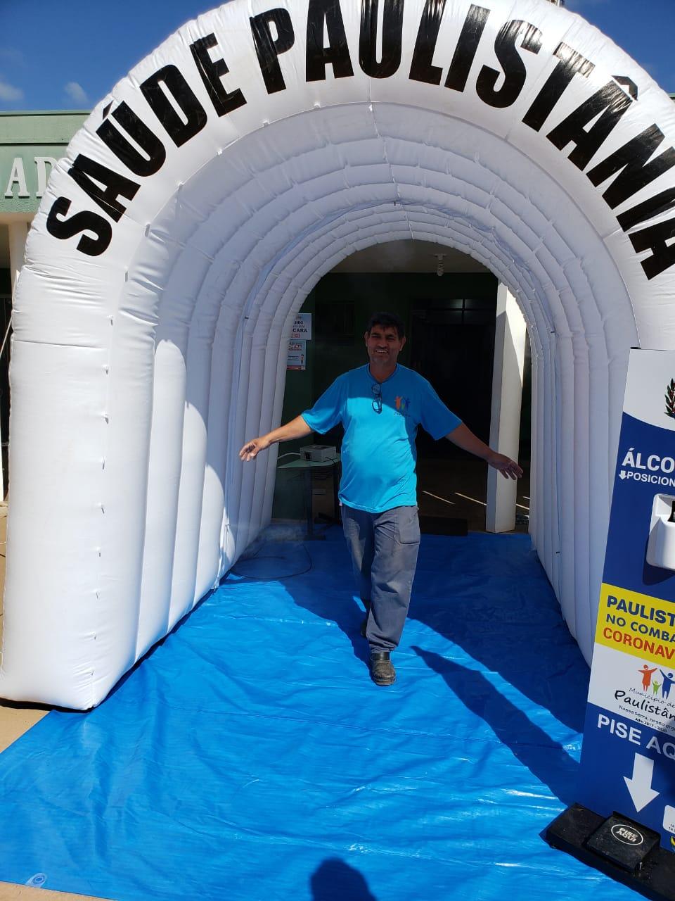 O túnel de desinfecção da Big Format infláveis possui fácil montagem e desmontagem, tornando desnecessário dispor de várias pessoas para realizar a manutenção do equipamento, pois basta ligar a energia que ele infla em poucos minutos.
